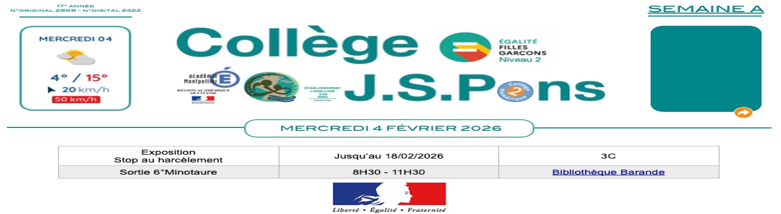 Planning du jour